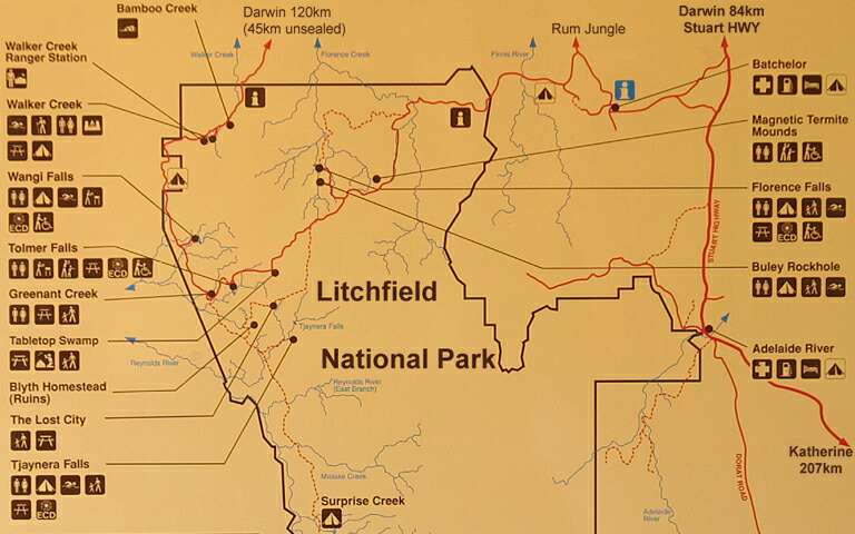 Litchfield Nationalpark Die offizielle Karte für den Litchfield Nationalpark (Infotafel der Parkverwaltung).