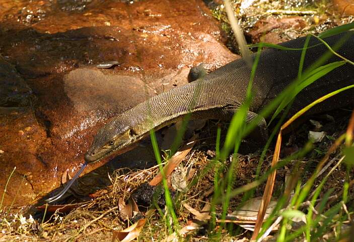 Litchfield Nationalpark Typisch für die Warane: die tief gespaltene blaue Zunge. Die in den NPs lebenden Tiere sind wesentlich weniger scheu.