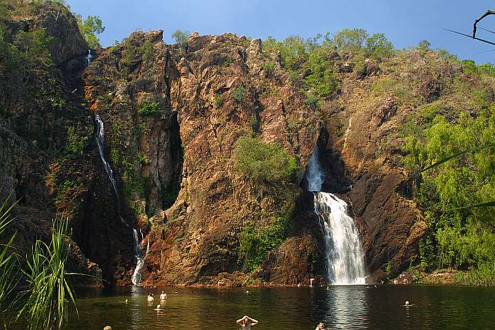 Litchfield Nationalpark Die Wangi Falls. Das Baden ist hier sehr zu empfehlen. Die Parkverwaltung sorgt dafür, dass keine Krokodile auftauchen.