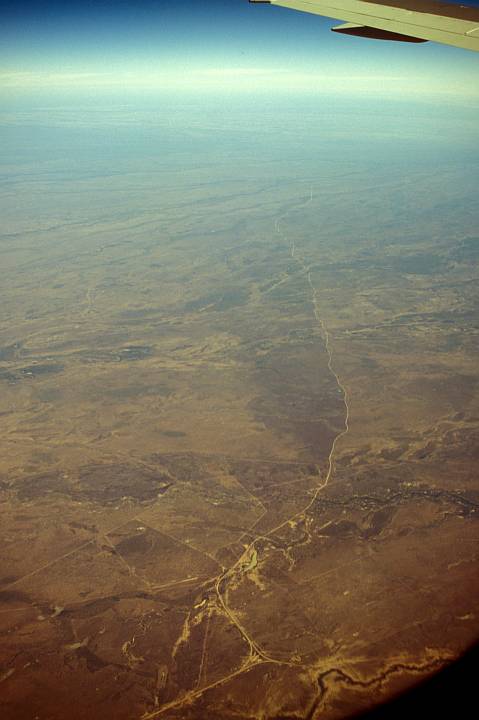 Impressionen während der Flüge Flug über das nordöstliche Australien. Deutlich ist die Straße zu erkennen, die sich allmählich im Dunst verliert.
