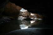 gehört ebenso wie die Windjana Gorge zum Devonian National Park. Am Tunnel Creek gibt es keinen Campingplatz, den nächsten findet bei der Windjana Gorge. Der Tunnel Creek ist auf jeden Fall einen Abstecher wert. Das Wasser hat hier in dem Kalkstein des Devon-Riffs einen Tunnel "gegraben", den man in der trockenen Jahreszeit komplett durchwandern kann. An einigen Stellen muss man allerdings durch das Wasser. Eine Taschenlampe sollte man auf jeden Fall dabei haben. Wegen meiner teuren Fotoausrüstung war mir das leider zu riskant. Ich bin nach meiner Tunnel Creek-Tour (ca. 16:00 Uhr) noch weiter bis Fitzroy Crossing gefahren und dort in der Abenddämmerung angekommen. Die Fairfield-Leopold Road war auf diesem Abschnitt teilweise in schlechterem Zustand. (Bilder zum Vergrößern anklicken!) |