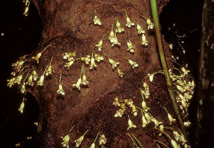 Etwas skuril: Blüten, direkt aus dem Baumstamm.