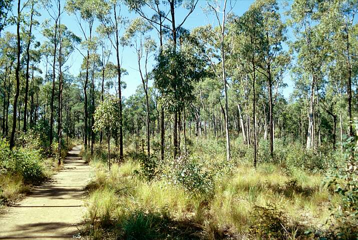 Carnarvon Nationalpark Der Weg zum Boolimba Bluff führt am Schluss durch lichten Eukalyptuswald. Ein Zeichen dafür, dass es hier wenig regnet.