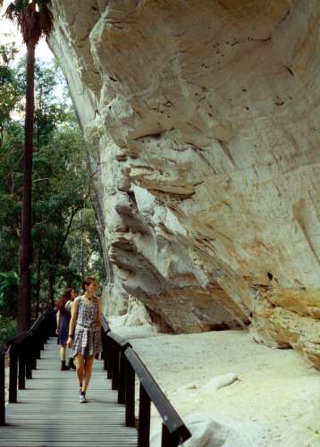 Die weit überhängende Felswand bietet viel Platz für Felsmalereien.