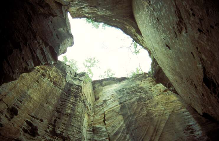 In der Cathedral Cave mit Blick zum Himmel.