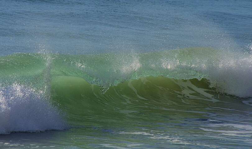 Great Sandy NP / Rainbow Beach Die niedrig stehende Morgensonne erzeugt in der Welle eine interessante Beleuchtung.