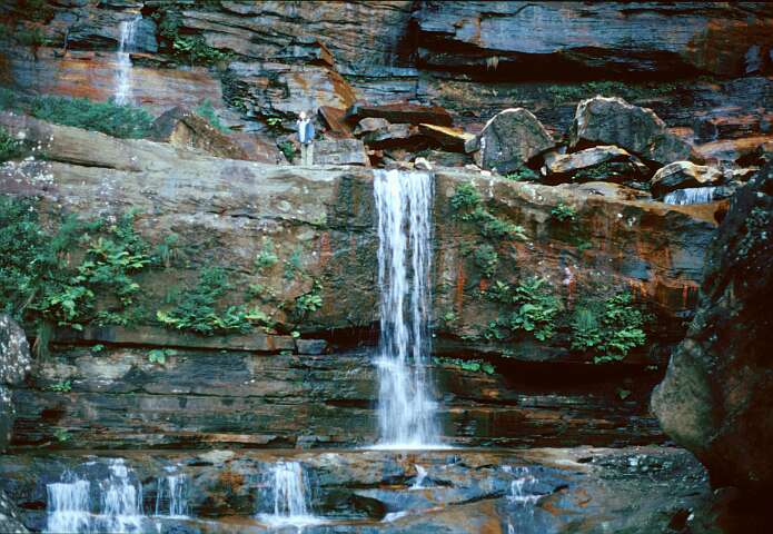 Die Wentworth Falls (300 m Höhenunterschied) in den Blue Mountains.
