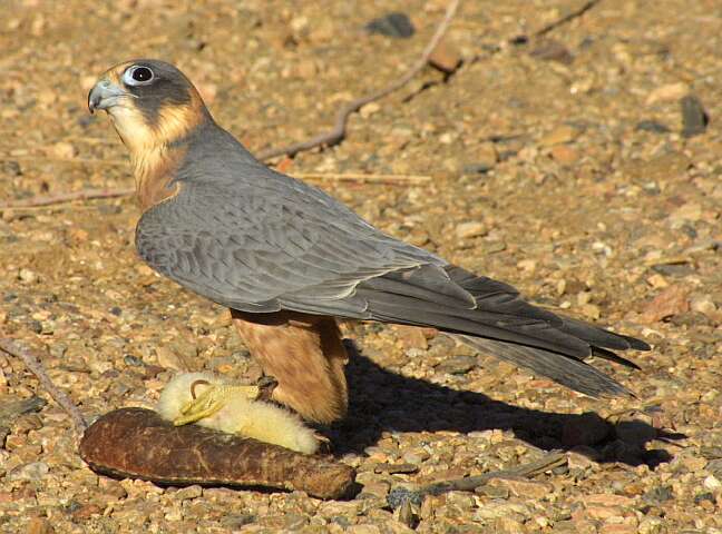 Australian Hobby, nachdem er den Köder gefangen hatte. Ein unheimlich wendiger