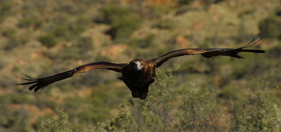 Wedge-tailed Eagle im Anflug. Auge in Auge mit dem Adler.