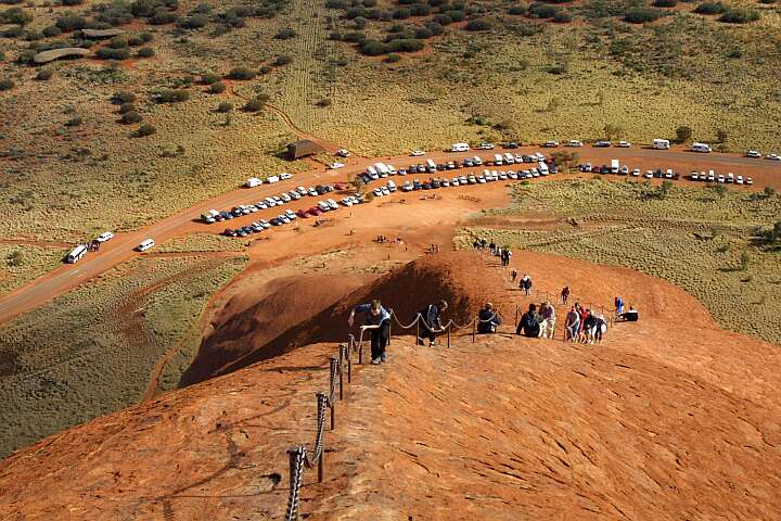 ULURU (Ayers Rock) Man braucht schon etwas Kondition für den Aufstieg - und man sollte es gemächlich angehen, aber das merkt man spätestens nach 100 m.