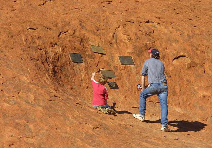Gedenktafeln für Todesopfer bei der Besteigung des Ayers Rock.