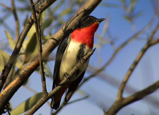 MacDonnell Range/Ormiston Gorge Ein Mistletoe Bird. Verraten hat er sich durch seine hohe piepsige Stimme. Nach einigem Suchen habe ich ihn dann im Gebüsch entdeckt. Sie fertigen Beutel-ähnliche Nester an.