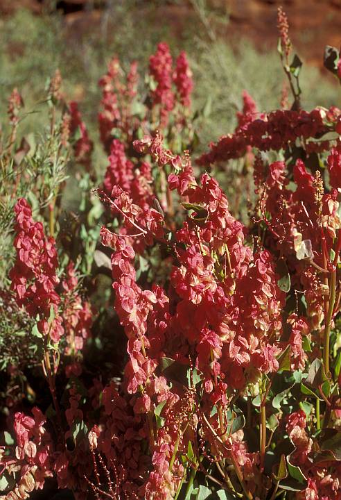 Eingeschleppter Rubinroter Ampfer, der sich stark ausbreitet.