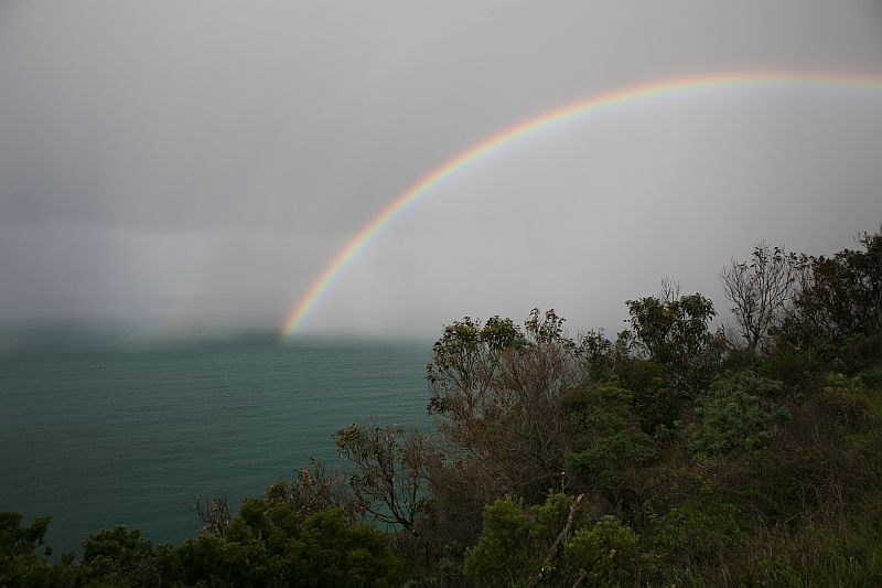 Schon von Weitem sah man die Regenwolken über das Meer heran ziehen. Mit der Sonne im Rücken gab es wünderschöne Regenbögen.