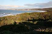 Wenn man sich schon mal in dieser Ecke Australiens befindet, ist die Great Ocean Road natürlich ein Muss. Im Osten beginnt sie bei Torquay, einem kleinen Ort an der Südküste Australiens ca. 60 km von Melbourne entfernt. Neben der spektakulären Steilküste bieten die Nationalparks zusätzliche Abwechslung. Jährlich wird die Straße von über 1 Mio. Autos befahren, d. h. im australischen Sommer könnte es hier schon mal richtig voll werden. Wenn man wie ich die Great Ocean Road im Winter fährt, braucht man keine Touristenmassen zu befürchten. Lediglich einwenig Glück mit dem Wetter wäre nicht schlecht. Allerdings erreichen die Tageshöchsttemperaturen in dieser Zeit kaum mehr 12-15°C. Gelegentlich verirren sich polare Kaltluftmassen hierher, dann kann auch mal Schnee fallen. |