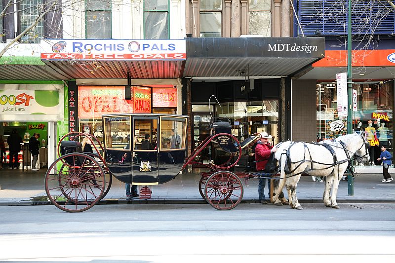 In Melbourne kann man auch per Kutschfahrt die Stadt erkunden.