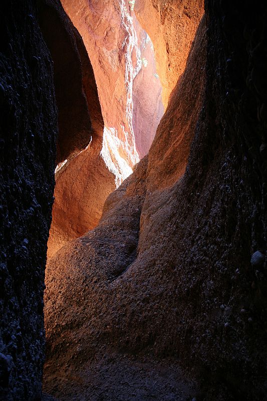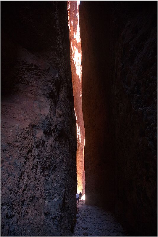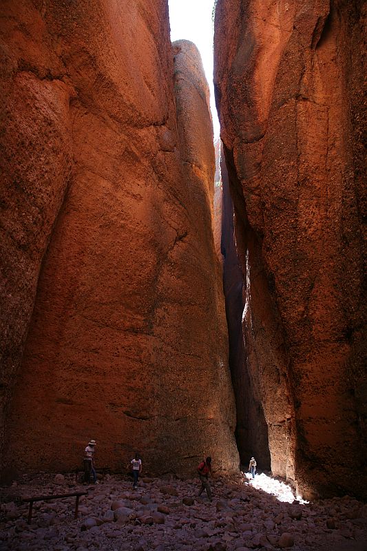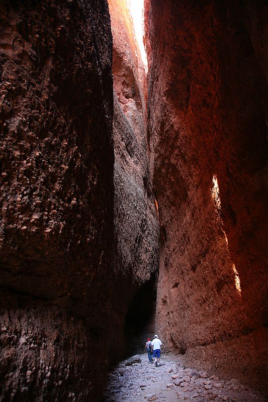 Die Bungle Bungle Range (hier die Echidna Chasm) ist neben dem Ayers Rock das Beeindruckendste, was ich in Australien gesehnen habe. In dieser Schlucht ragen die Seitenwände ragen bis zu 200 m auf und an der engsten Stelle ist sie nicht einmal 2 m breit. Auch in der Mittagszeit sind die Temperaturen in der Schlucht recht erträglich. |