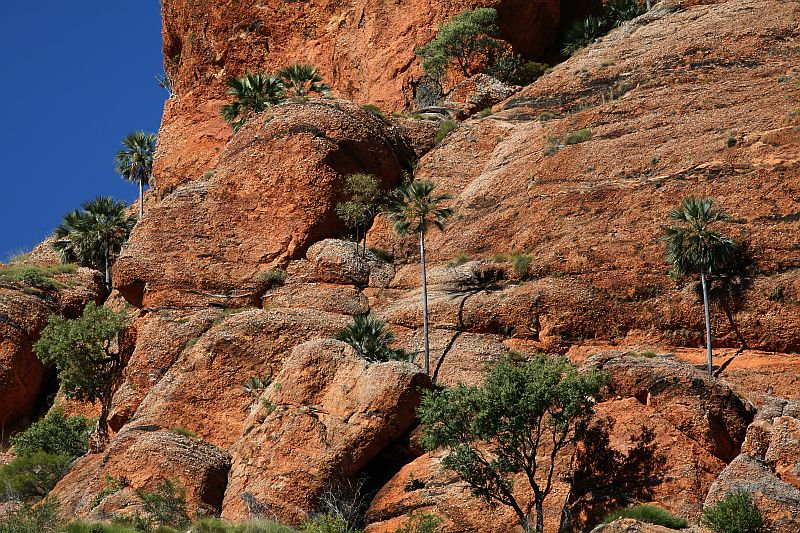 Die Felspalten bieten offensichtlich genügend Wasser für Palmen, Bäume und andere Pflanzen, die sich an die Bedingungen hervorragend angepasst haben.
