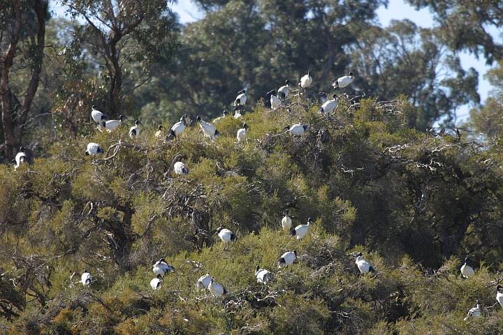 Das Cape Leeuwin liegt 325 km südlich von Perth. Vor Bunbury zweigten wir vom Highway 1 ab und fuhren eine Nebenstrecke. Dort sahen wir diese Ibiskolonie (Molukkenibis, Australian White Ibis, Threskiornis molucca).