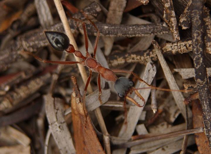 Bulldoggenameise (Bulldog Ant) mit kräftigem Kiefer und giftigem Stachel; einig Arten können 20 cm weit springen.