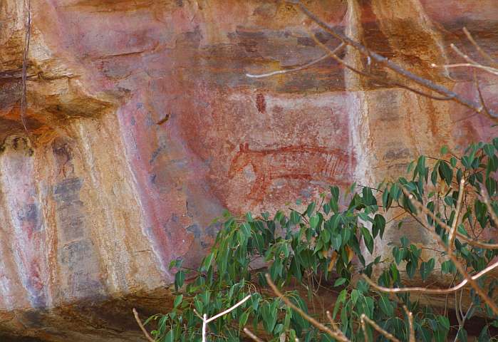 diese Felsmalerei von einem Beutelwolf. Also muss es zu der Zeit, als die