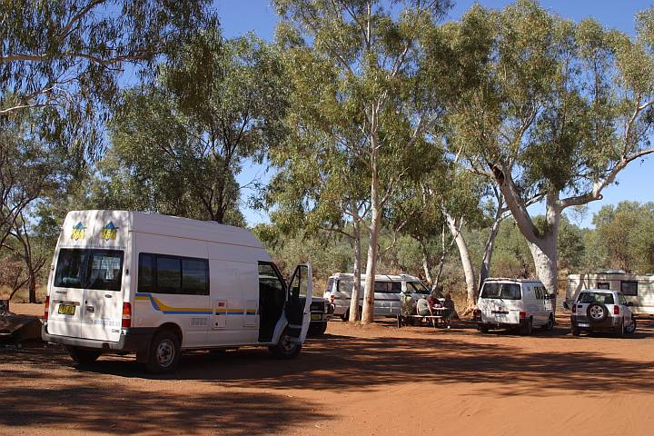 | Der Rastplatz Beasley River lädt zu Pause im Schatten der großen Eukalyptusbäume ein. Er liegt an der Manutarra-Munjina Road, das ist der Highway 136 nach Paraburdon und Tom Price. Übernachtungen sind auf diesem Rastplatz erlaubt. Zu den Einrichtungen gehören die Tischgruppen, ein Grill und eine Toilette. Allerdings gibt es kein fließendes Wasser. Derartige Rastplätze gibt es an den Highways etwa alle 200 Kilometer. |