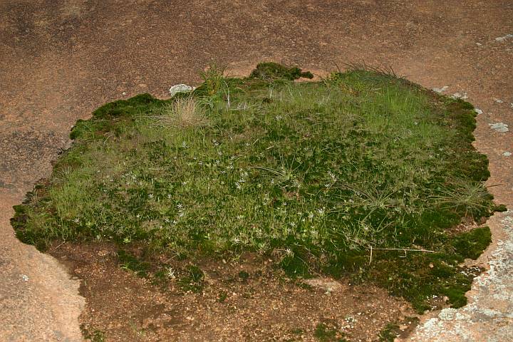 Auf dem Granitfelsen entstehen Mulden, in denen sich kleine Biotope bilden können.