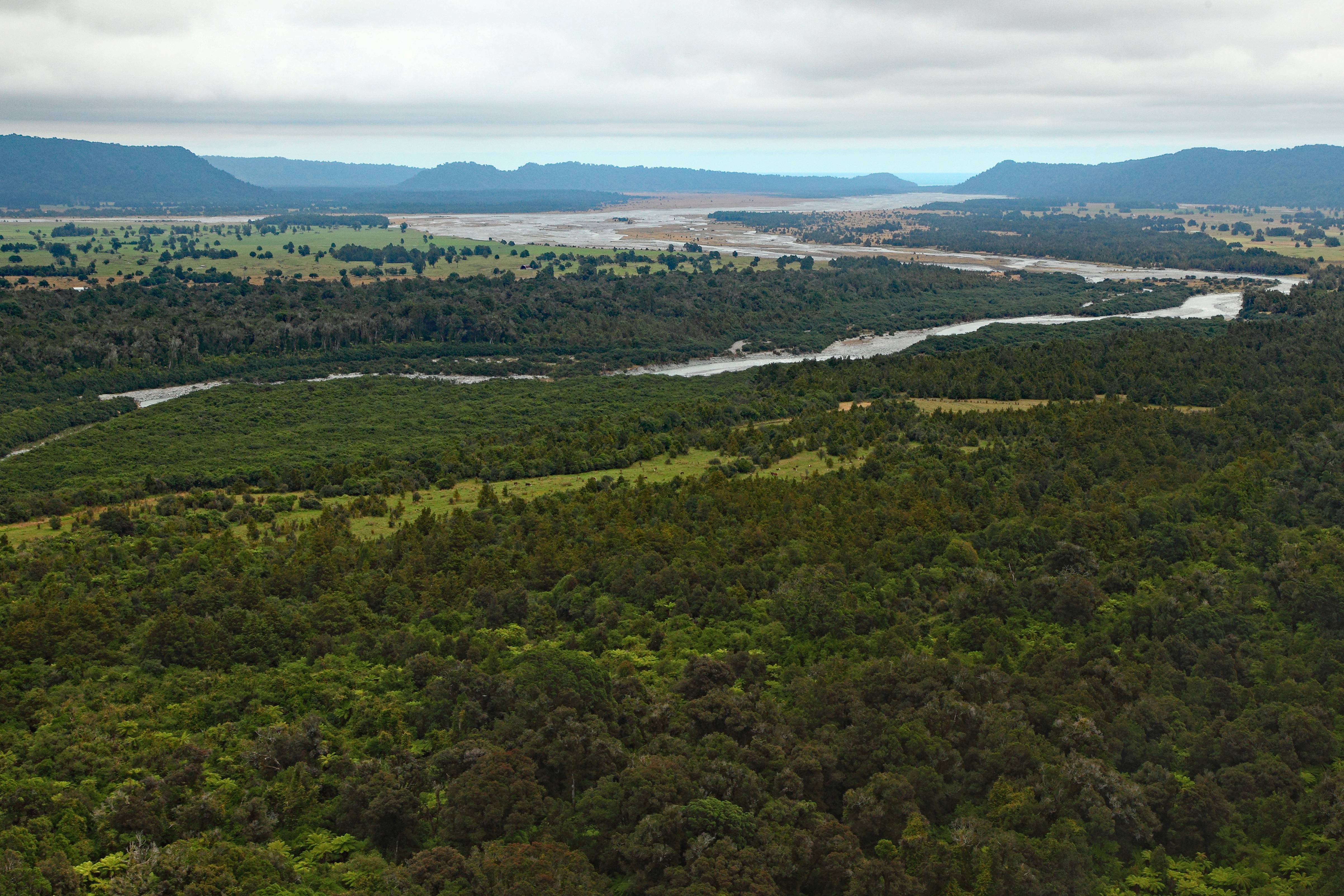 ![]() Wenige Kilometer vor dem Meer vereinigen sich der Fox River (im Vordergrund) und der Cook River (links im Hintergrund vor den Bergen). Ganz im Hintergrund ist naoch das Meer zu erkennen. Das Foto in voller Auflösung: hier |