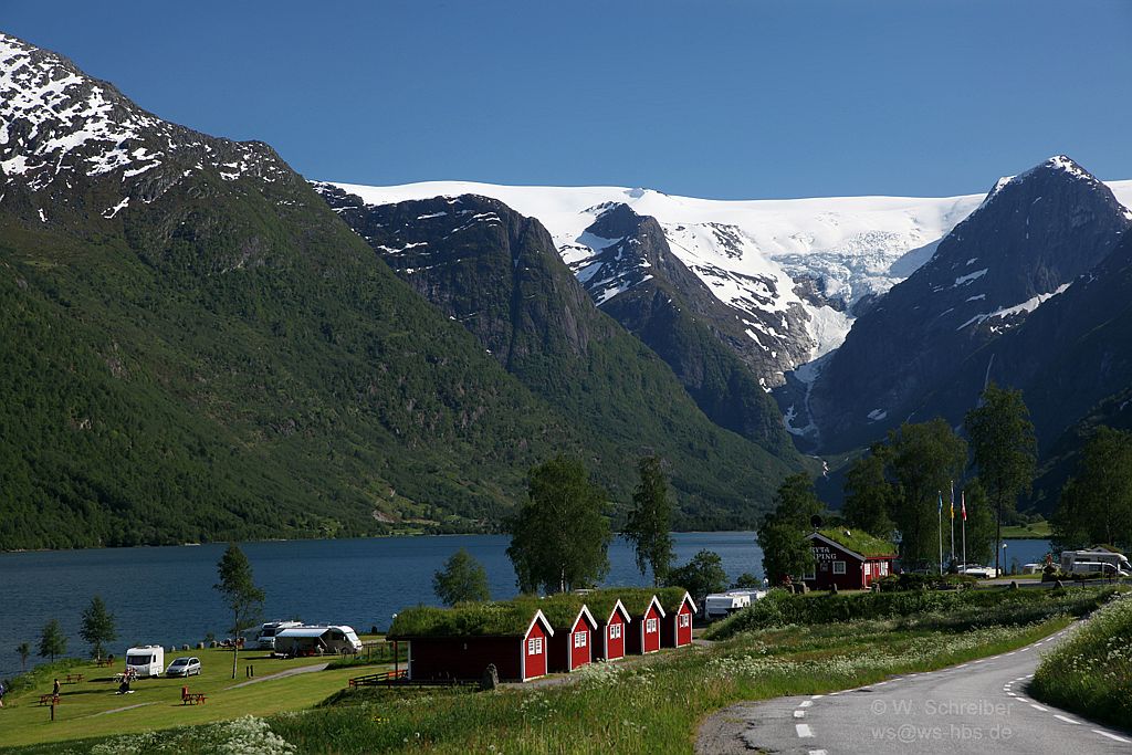 090531-7888 - Jostedalsbreen und Gryta Camping im Vordergrund